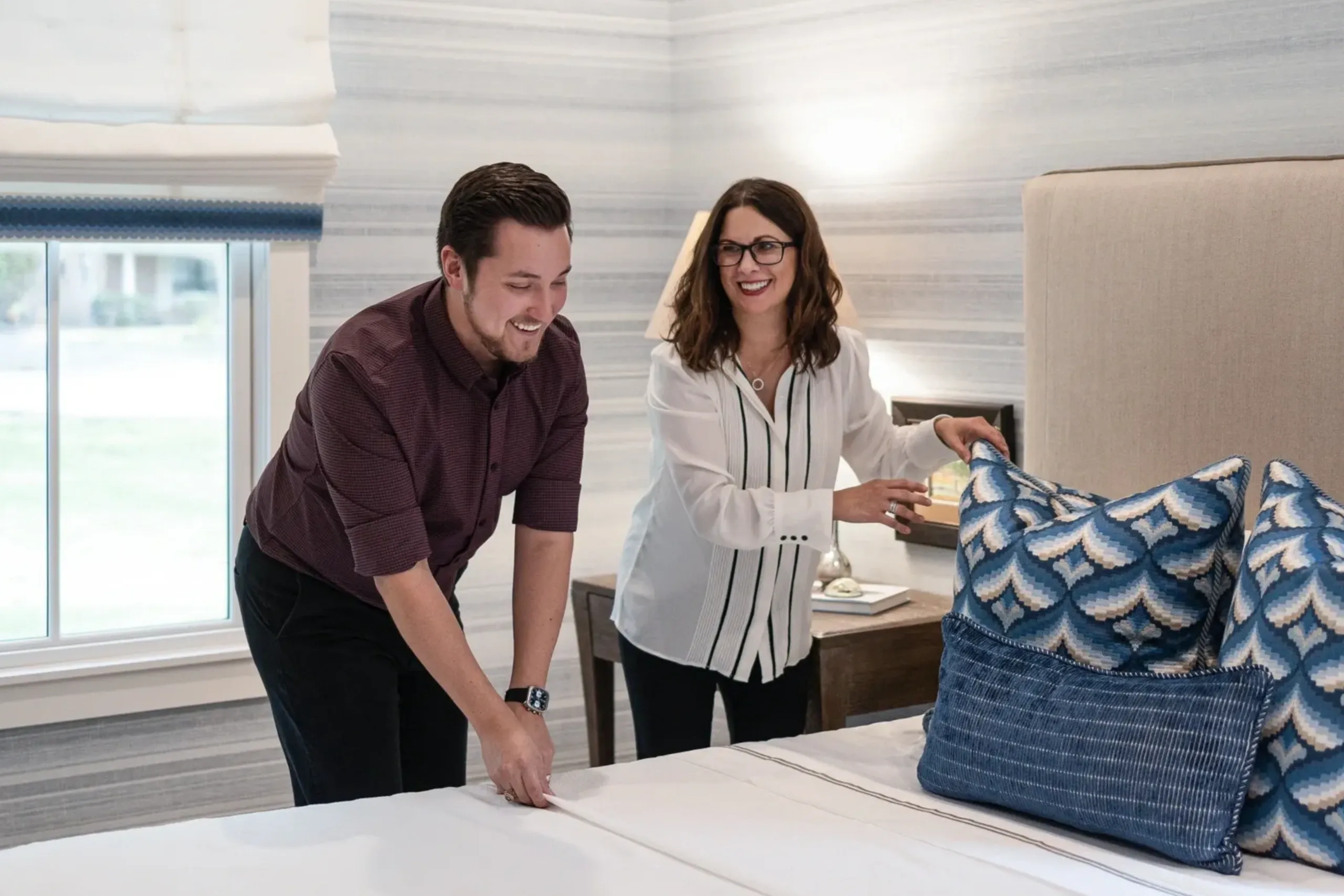 Dylan is a multi-talented designer with years of experience in both architecture and interior design. Prior to his professional career, he attended Texas A&M University where he earned a design degree from the College of Architecture with a minor in Urban & Regional Planning. For years, Dylan was a designer at an architecture firm in Houston where his experience included restaurants, hospitality, commercial, entertainment, and residential projects. While there, he had the pleasure of designing over 50 retail stores across several states, The Grotto Downtown, The Hyatt Regency St. Louis, and the historic Marriott Philadelphia. In 2018 he narrowed his professional scope to work strictly in interior design and quickly found himself at the helm of an established design firm in Houston. This allowed for Dylan to design and project manage numerous home remodels, create custom furniture, complete new ground up residences, and cross paths with Monica and become the team they are today. Aside from furnishings and design, his knowledge of construction documents and ability to draw detailed elevations and furniture plans are vital in creating and executing a cohesive design concept. Dylan finds the face-to-face client interaction the most enjoyable aspect of working in this industry. Some of his most cherished memories are being at home with family and he feels so rewarded being able to create timeless spaces at home for clients to build similar memories in.